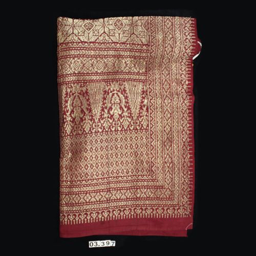 Salah satu kelengkapan pakaian wanita yang terbuat dari katun merah tua dan disongket dengan benang makau putih. Bagian tengah kain dihiasi motif bunga dan belah ketupat, sedangkan arah kepinggir diberi motif tumpal dan belah katupat. Dipakai sewaktu upacara adat.
