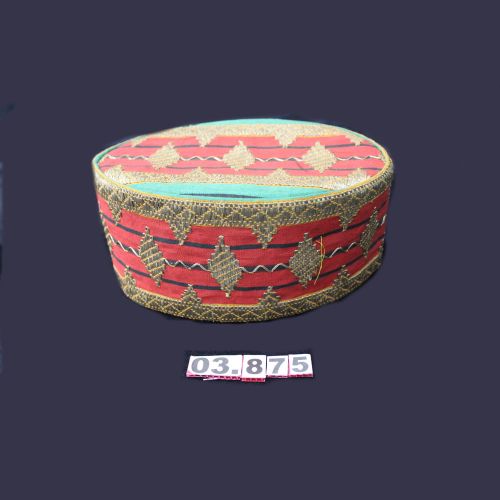 Salah satu tutup kepala laki-laki hasil kerajinan dari daerah Lampung adalah kopiah. Terbuat dari kain katun berwarna dasar merah dengan bentuk oval, dinding tegak, bagian atas datar dan bagian dalamnya dilapisi kertas tebal. Bagian atasnya dikombinasikan dengan warna hijau serta dihiasi dengan benang emas bermotif tumpal dan belah ketupat. Pada dinding luar terdapat motif belah ketupat yang diapit motif piramida dan sebuah garis. Dipakai sebagai tutup kepala pada saat menunaikan ibadah shalat lima waktu.